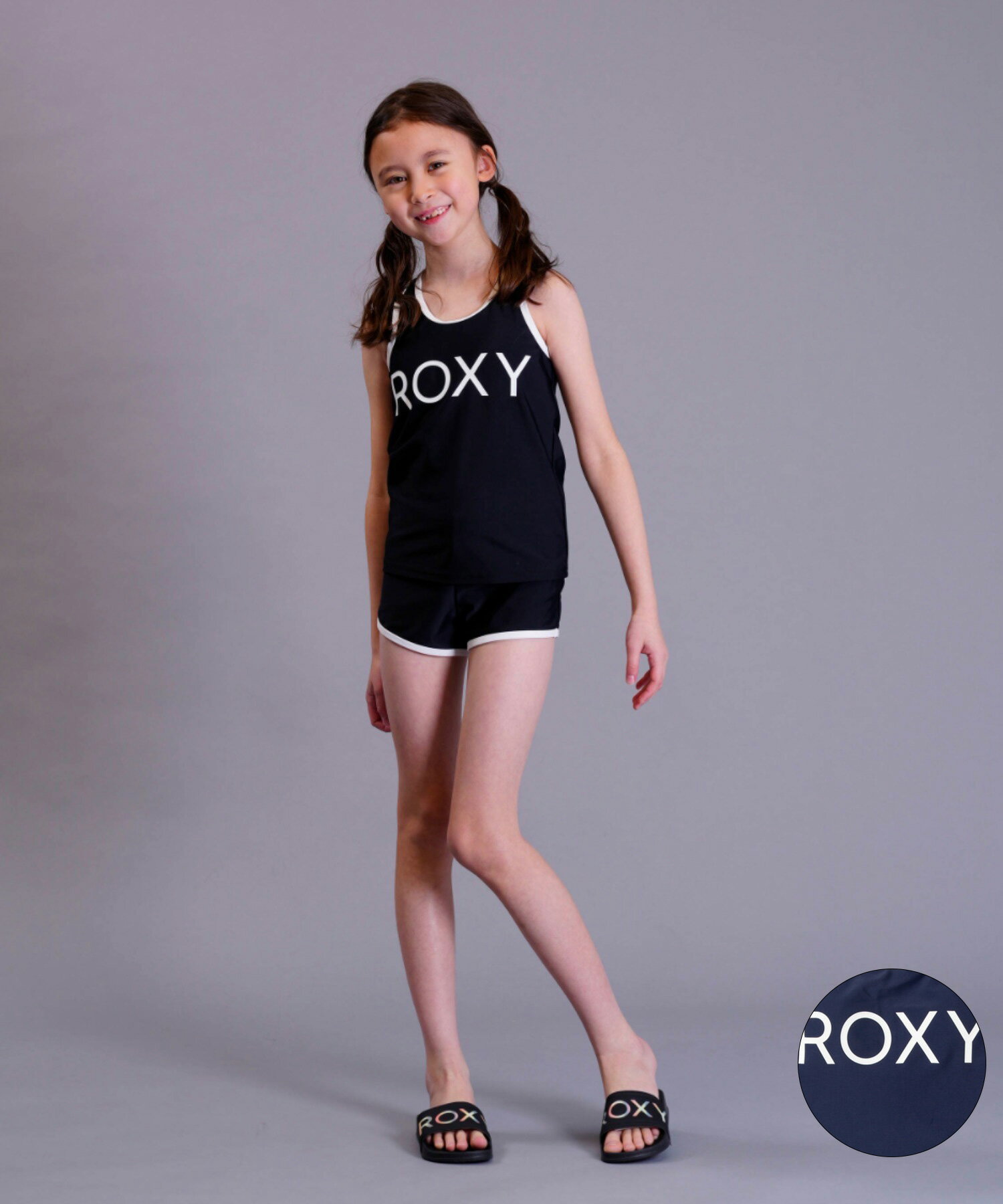 ROXY ロキシー【TSW231100_NVY】(NET3F) 子供 水着 タンキニ 23SP [MINI DEEP WATER] 女の子 ガールズ キッズ ジュニア 上下セット 二点セット スクール水着 水泳教室 スイミング [メール便対応可]