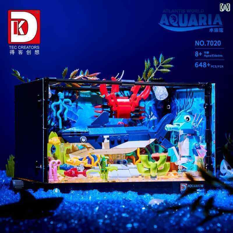 水槽 おもちゃ フィギュア ビルディングブロック Deke ライト 海洋 生態学 水槽 水族 館 カメ サメ 子供用 組み立て おもちゃ ギフト