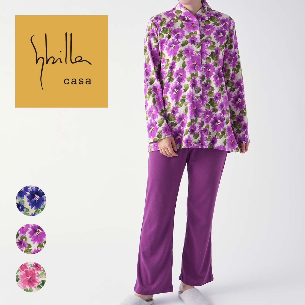 【Lサイズ】Sybilla シビラ 30スムース 微起毛プリント 前ボタン Delicias デリシアス 長袖 長丈パンツレディース 女性 婦人 73925803
