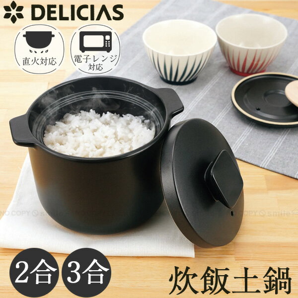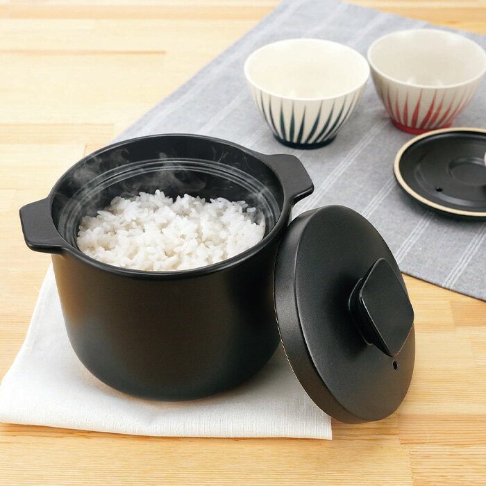 【直火・電子レンジ対応】DELICIAS-デリシアス- 炊飯土鍋 2合炊き (DEL-22)卓上 炊飯 1~2人用 ふっくら炊ける 陶器 吹きこぼれにくい 内蓋付き 簡単 均一 炊き込みご飯 白米 一人暮らし キッチン 炊飯器 ブラック