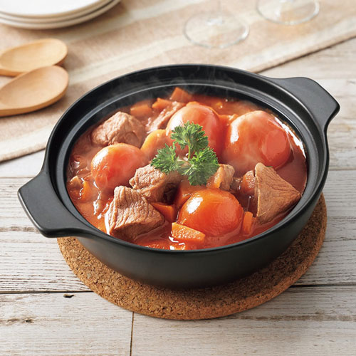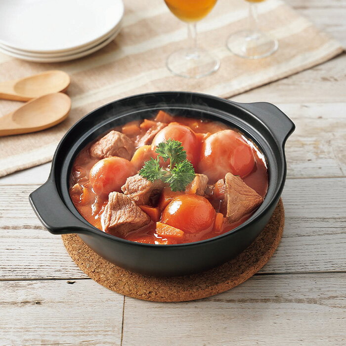もっと食べたい、また食べたい。今日もお鍋を楽しもう。シックな洋風土鍋。 鍋もの以外にも、煮込み料理や炒め物、蒸し料理にも。均一に食材を加熱し、ムラなく美味しく調理します。陶器の保温効果であったか長持ち。 235×190×100mm(内径165mm) 本体/耐熱陶器蓋/陶器