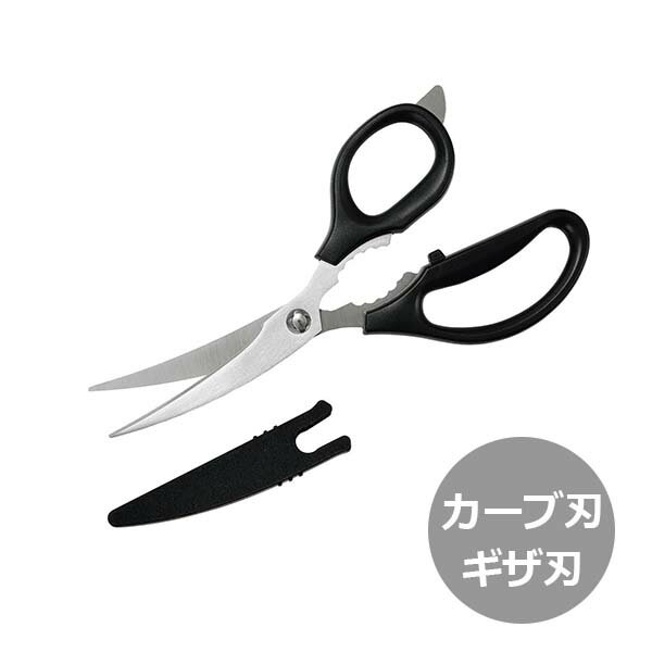 【ケース付き】DELICIAS -デリシアス- カーブ刃&ギザ刃 キッチンハサミ (DEL-04) カーブ刃 ギザ刃 分解式 ステンレス製 ブラック キッチンハサミ 調理 取り分け バイキング 焼肉 バーベキュー 洗いやすい フタ開け 殻割り 切りやすい 洗いやすい【メール便対応】