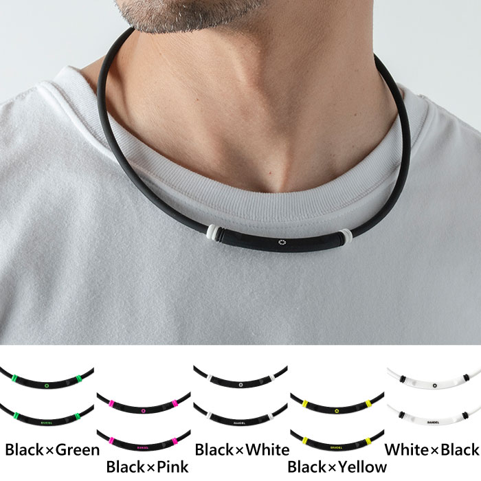 47cm 52cm Black×Green(ブラックグリーン) Black×Pink(ブラックピンク) Black×White(ブラックホワイト) Black×Yellow(ブラックイエロー) White×Black(ホワイトブラック) おしゃれ オシャレ 男性用 女性用 ユニセックス 男女兼用 両用 最安値に挑戦!BANDEL バンデルってどんなブランド??BANDELは「The POWER and FORCE -力の融合-」をコンセプトにしたライフテックブランドで、人生を謳歌する人に相応しい製品とサービスを展開。 運動能力・バランス力・回復力・集中力などが 必要とされる様々なシーンで身体的なポテンシャルを 最大限に引き出すことを目的としたライフスタイルギアを開発している。 こちらの商品の素材、サイズ、機能など超強力!最大磁束密度180mT!BANDEL Healthcare BOLD Necklace(ボールドネックレス)シリーズは、BANDELの ヘルスケア磁気ネックレス史上初となるプラチナシリコーン製のループを採用。プラチナシリコーンは 有機過酸化物を使用しない極めて安全な素材です。さらに表面には抗菌・抗ウイルス効果の高い 光触媒加工を施すことで健康への意識を高めます。ループに内蔵する磁石には永久磁石の中でも最強の磁力を発生するネオジム磁石を採用。 直径4.8mm太いループに大型のネオジム磁石を内蔵することで最大磁束密度180mTを達成。見た目の迫力に加え、名実共に超強力な磁石のチカラで肩と首のこりを緩和し、血行を促進させます。「Lite Sports」はオールシリコーンであることから「Stack」に比べ約40%もの軽量化に成功。激しい運動の際にも気にならない、まさにスポーツシーンにぴったりの軽快なモデルです。■素材:ループ:プラチナシリコーン + ネオジム磁石ヘッド:プラチナシリコーン■サイズ:47cm(ループ 40cm/ヘッド 7cm)52cm(ループ 45cm/ヘッド 7cm)■医療機器認証番号:303AGBZX00013000HLCNBLS-A-BW47 HLCNBLS-A-BW52 HLCNBLS-B-BY47 HLCNBLS-B-BY52 HLCNBLS-C-BG47 HLCNBLS-C-BG52 HLCNBLS-D-WB47 HLCNBLS-D-WB52 HLCNBLS-E-BP47 HLCNBLS-E-BP52※こちらの商品は、返品・交換不可となります。※当店では、システムで在庫調整を行っております。在庫更新のタイミングにより、在庫切れの為、稀にご用意できない場合がございます。