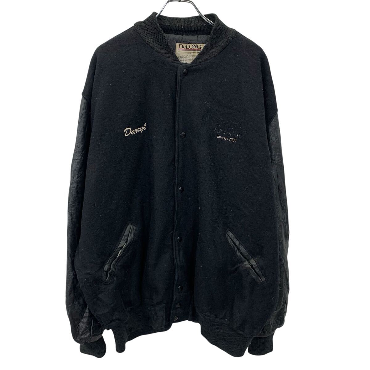 【中古】90s USA製 ヴィンテージ DeLONG アームレザー ウール スタジャン 古着 メンズ 表記XXLサイズ ブラック・レッド