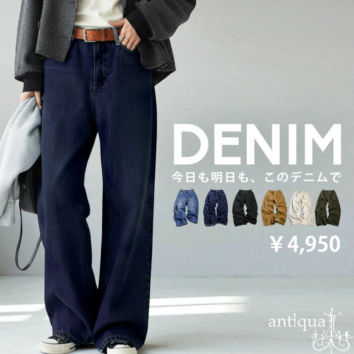 ▼▼▼ 大人気タックワイドパンツにデニムverが登場。 ワイドかつすっきり脚長、大人が穿きたいデニム。 絶妙なイロアイの生地と加工がデニムながらにシンプルで使いやすい。 オールシーズン使えてお値段以上に高見えを叶えてくれる1本です。 ≪DETAIL≫ ・フロントに長めに入ったタックが立体感をプラス。 ・深めの股上で脚長効果抜群!! ・金具はマットシルバーで統一し、上質な仕上がり。 ・高クオリティなのにリーズナブルが嬉しい。 ≪FABRIC≫ ・綿100%だからたっぷり生地でも軽く、柔らかな質感。 ・しっかりと丈夫で穿くほどに馴染むから毎日穿いても飽きない。 ・表情豊かな色落ち加減が風合いたっぷりの生地感。 ・長く着込んだような、全体が淡く色褪せたようなカラーが魅力的。 ≪COLOR≫ 色落ちブルー・ビンテージブルーの2色展開! ≪SIZE≫ FREE サイズ M L 丈(脇) 102 105 ウエスト(後ろゴム伸縮あり) 72〜84 74〜86 ヒップ 102 106 もも周り 68 72 股上 36 37 股下 70 72 裾周り 48 50 ※平置き採寸です。サイズは目安にご参考下さいませ。 ※生地加工を施している為、工程上、色によりサイズに個体差±3cmが発生致します。ご了承の上、お買い求めくださいませ。 素材 綿100% ※【商品・配送について】ご購入前にこちらの注意事項をご確認ください。 Please check the notes for this item and check this shipping note before you buy. 【検索ワード】タックワイドデニム パンツ レディース ボトムス ロング 綿100 デニムパンツ デニム 無地 長ズボン ワイド ワイドストレート ワイドパンツ タックパンツ タック ゆったり ジーンズ ジーパン ハイウエスト すっきり シンプル 綿 コットン 後ろゴム 大きめ 大きいサイズ ファスナー ボタン 脚長効果 antiqua アンティカ 大人 おしゃれ 10代 20代 30代 40代 50代 60代 春 夏 秋 冬 オールシーズン お洒落 カジュアル かわいい かっこいい あんてぃか