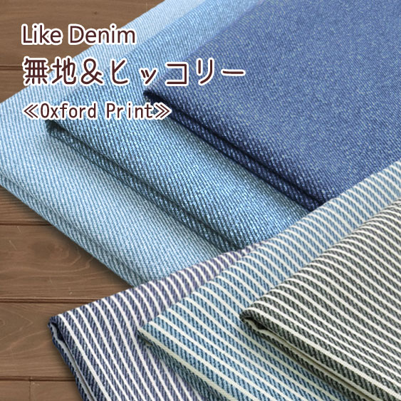 ▼Like Denim(ライクデニム)『無地&ヒッコリー』≪オックスプリント≫※110cm幅 コットン100%|入園 無地 バッグ マツケ matsuke まつけ 生地|