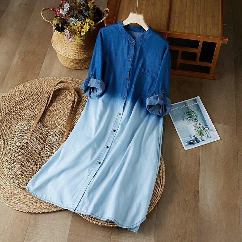 ロングワンピース チュニック ワンピ ワンピース ロングシャツ 長袖 シャツワンピース きれいめ デニム ロング ウェット 無地 秋物 レディース リゾートワンピ 体型カバー シンプル カジュアル 着痩せ 春 秋 膝下 大人 30代40代50代
