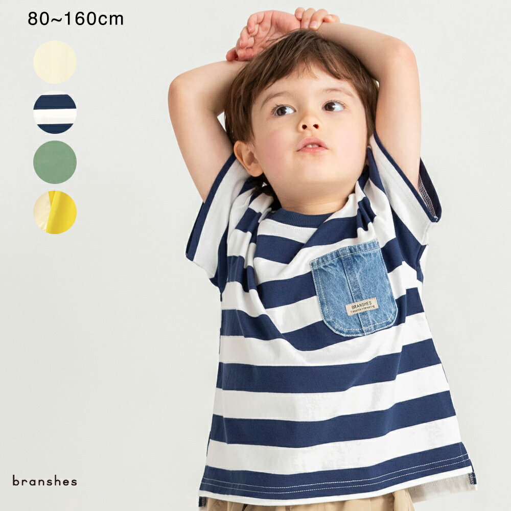 メーカー希望小売価格はメーカー商品タグに基づいて掲載しています→こちら商品カテゴリ:カジュアル ガーリー シンプル ナチュラル フェミニン オシャレ おしゃれ キレイ キレイめ きれいめ 上品 かわいい 可愛い 大人 オトナ 大人かわいい 大人可愛い 大人っぽい おでかけ お呼ばれ お揃い 兄弟お揃い 姉妹お揃い 親子お揃い ママリンク ママリンクコーデ リンク リンクコーデ 大きい 大きいサイズ 大きめ 大きめサイズ 安い プチプラ 楽ちん 楽チン 新作 新着 トドラー 通園 保育園 小学校 幼稚園 0才 1才 2才 3才 4才 5才 6才 7才 8才 9才 10才 11才 12才 新生児 乳幼児 60cm 70cm 80cm 90cm 100cm 110cm 120cm 130cm 140cm 150cm 160cm毎年人気のデニムポケット付半袖Tシャツ!夏の着まわしナンバー1トップス。お友達同士、きょうだいでお揃いコーデも楽しめます。24年SSデザインから胸回りなどが少しゆったりめのシルエットになり、より着脱しやすくなりました♪ロイヤルコットン100%使用。ちいさなお子さまから安心してご着用いただけます。どんなコーデにも合わせやすいベーシックなデザインのポケットTシャツ。最大のポイントは色落ち感にこだわった8ozデニムのポケット!他と差がつくビンテージ感が推しポイントです。太めピッチのボーダーはブランシェスならでは!ベーシックなネイビーボーダーと着まわしのきく単色使い、存在感のあるカラーも新たに登場!サイドから見たときにおしゃれな立体感が出る「脇スリット」入り。男女問わず着用できます。※160cmはネット限定のサイズ展開となります。■素材本体部分「綿100%」ロイヤルコットン使用。「吸汗性」にすぐれ「肌ざわりが良い」生地を使用しています。丈夫で型崩れしにくい、お洗濯にもぴったりの素材です。-----伸縮性:ありポケット:あり透け感:アイボリーカラーは色の特性上、やや透け感がございます。素材本体:綿100% リブ部分:綿96% ポリウレタン4% ポケット部分:綿100% 8090100110120130140150160着丈343639424549535863胸回り6466727680849096102背肩幅293033353739424548袖丈7.58.59.510.511.512.51415.517袖口まわり2425272829.5313334.536 ※モデル着用写真についてはイメージの為、実際の商品とカラーや仕様が異なる場合がございますので、商品画像をご覧ください。※商品の色味につきまして、お客様のお使いのPCのモニター環境により実際のカラーと画像の色味が違って見える場合が御座います。予めご了承の上、ご注文下さい。※店頭・外での撮影画像は光の加減で、実際の商品より明るく見える場合が御座います。