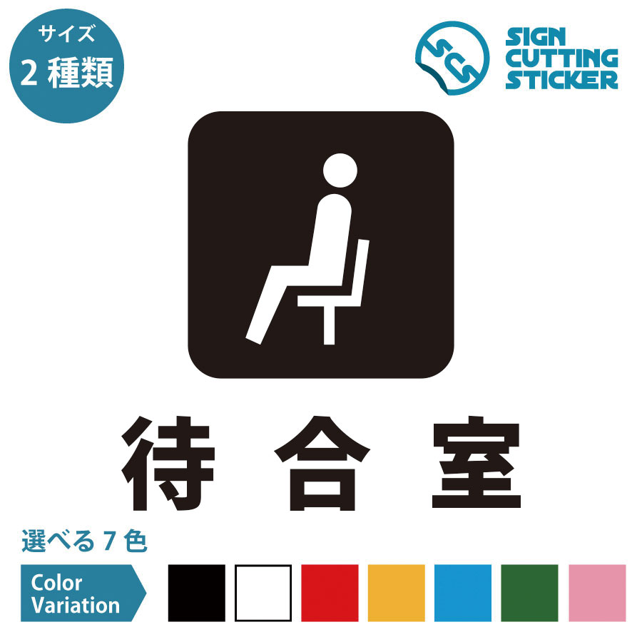 待合室 案内 シール ステッカー カッティングステッカー 【150~200mmサイズ】 光沢タイプ 防水 耐水 屋外耐候3~4年 控室 休憩室 オフィス 職場 フロア 店舗 施設 役所 学校 病院 診療所 歯医者 動物病院 賃貸 ドア 扉 窓 壁 床 ガラス