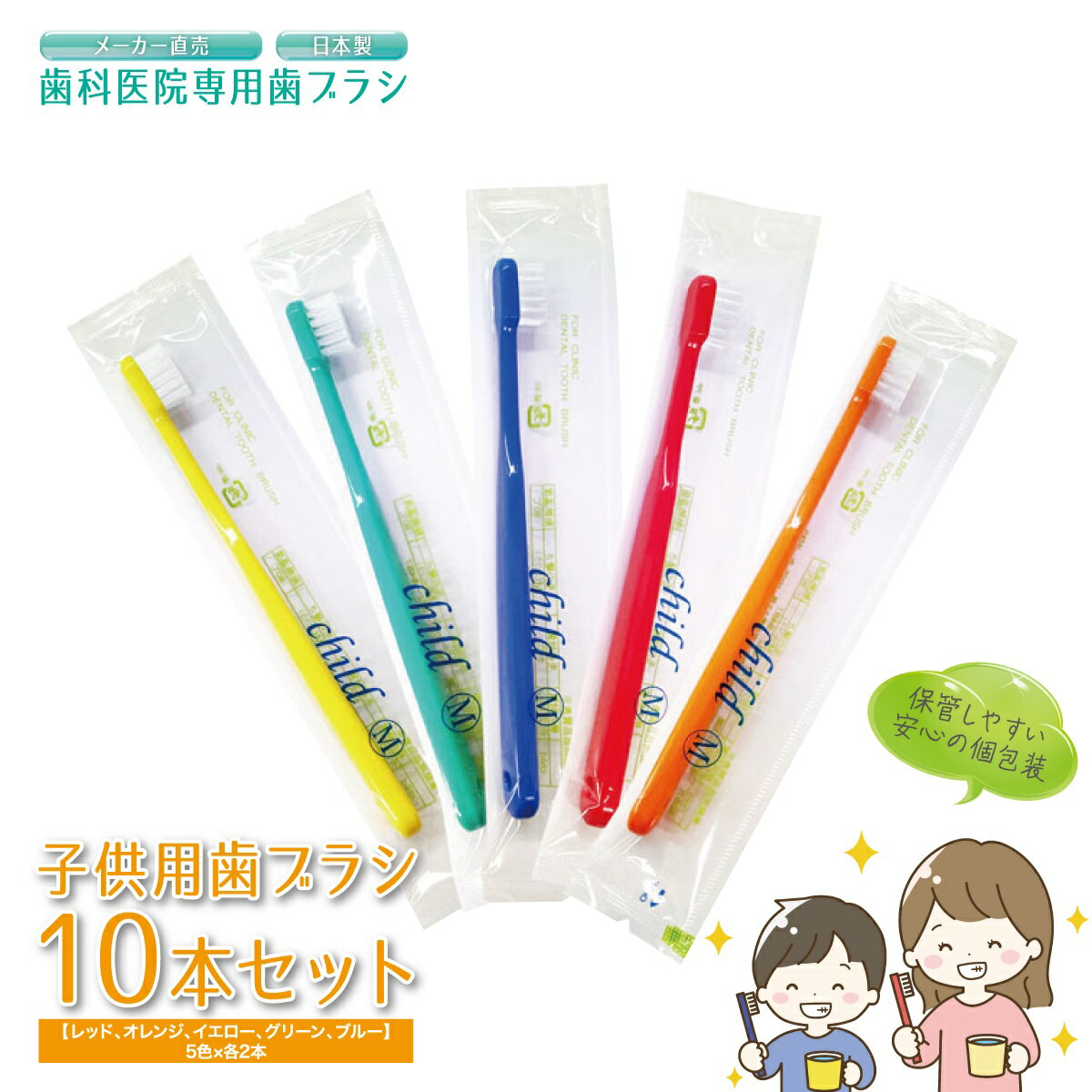 歯ブラシ 子供用歯ブラシ 日本製 歯科医院専用 5色×2本 合計10本 メール便送料無料 歯医者 小学生 幼児 子どもハブラシ 歯科専売 ハブラシ 歯科用 はぶらし 子ども用歯ブラシ 歯科 歯科医 子供 こども 子ども 歯科