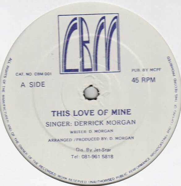 【中古】英12” Derrick Morgan This Love Of Mine / Sad To Be Lonely CBM001 CBM /00250