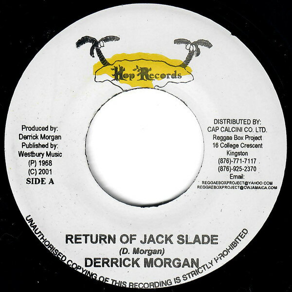 【中古】ジャマイカ7” Derrick Morgan Return Of Jack Slade / My First Taste Of Love NONE Hop Records /00080
