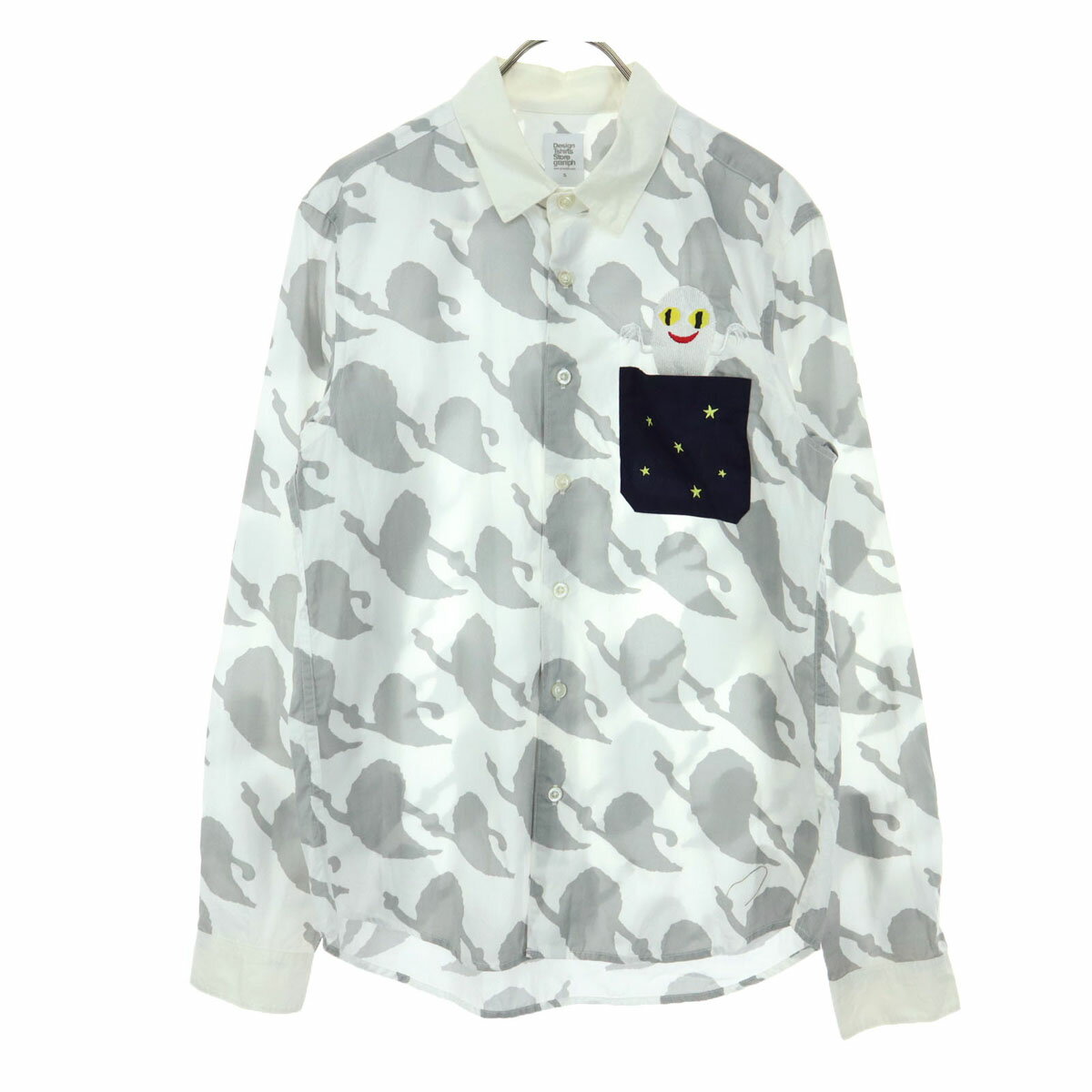 古着 Design Tshirts Store graniph デザインティーシャツストアグラニフ キャラクター 長袖 コットンシャツ S ホワイト系 胸ポケット メンズ 【中古】