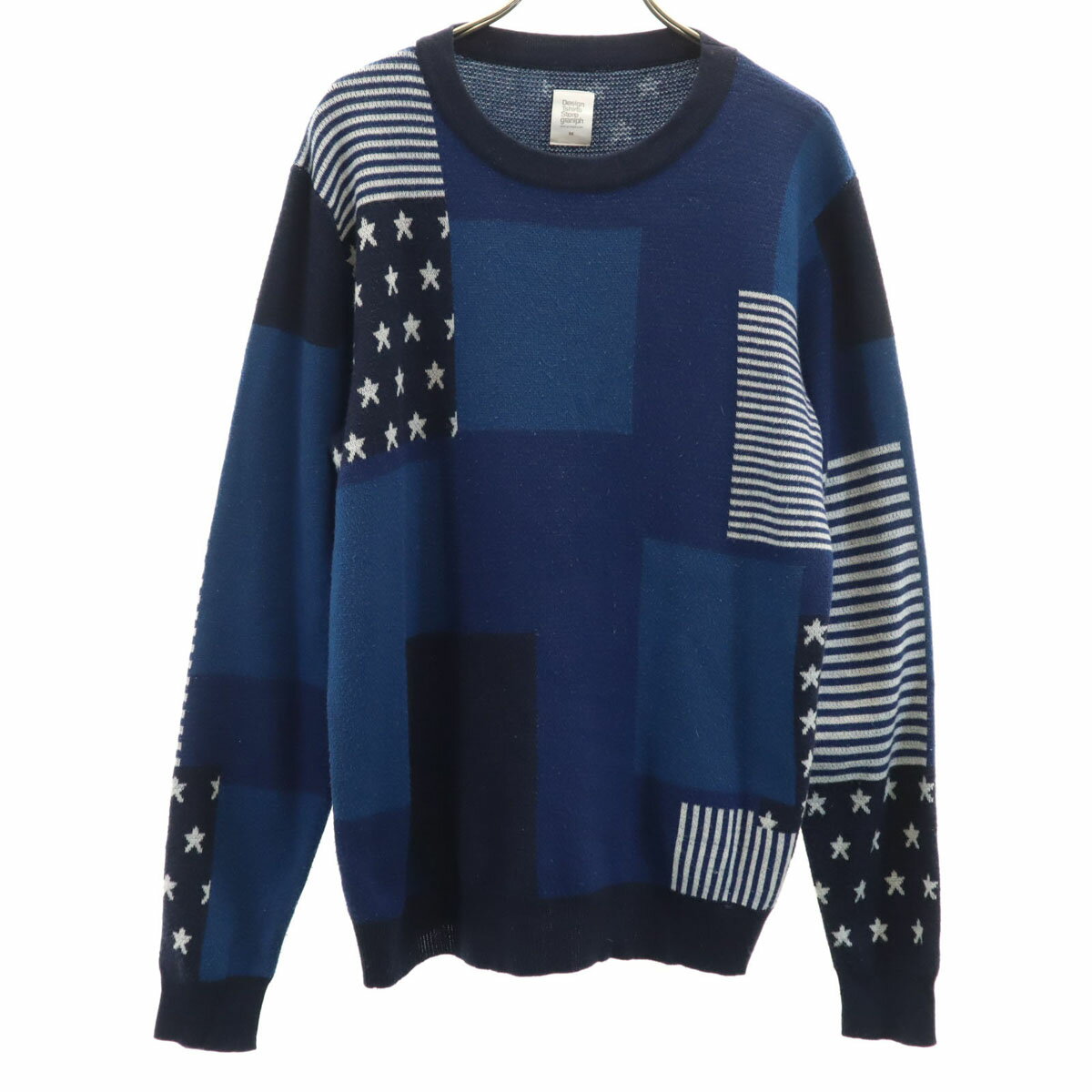 古着 Design Tshirts Store graniph デザインティーシャツストアグラニフ 総柄 長袖 セーター M 青紺 ニット メンズ 【中古】