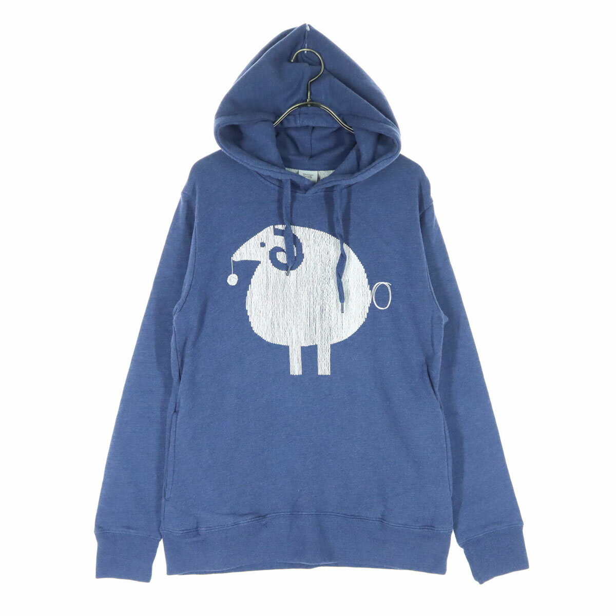 古着 美品 Design Tshirts Store graniph デザインティーシャツストアグラニフ アニマル プリント 長袖 スウェットパーカー M ブルー メンズ 【中古】