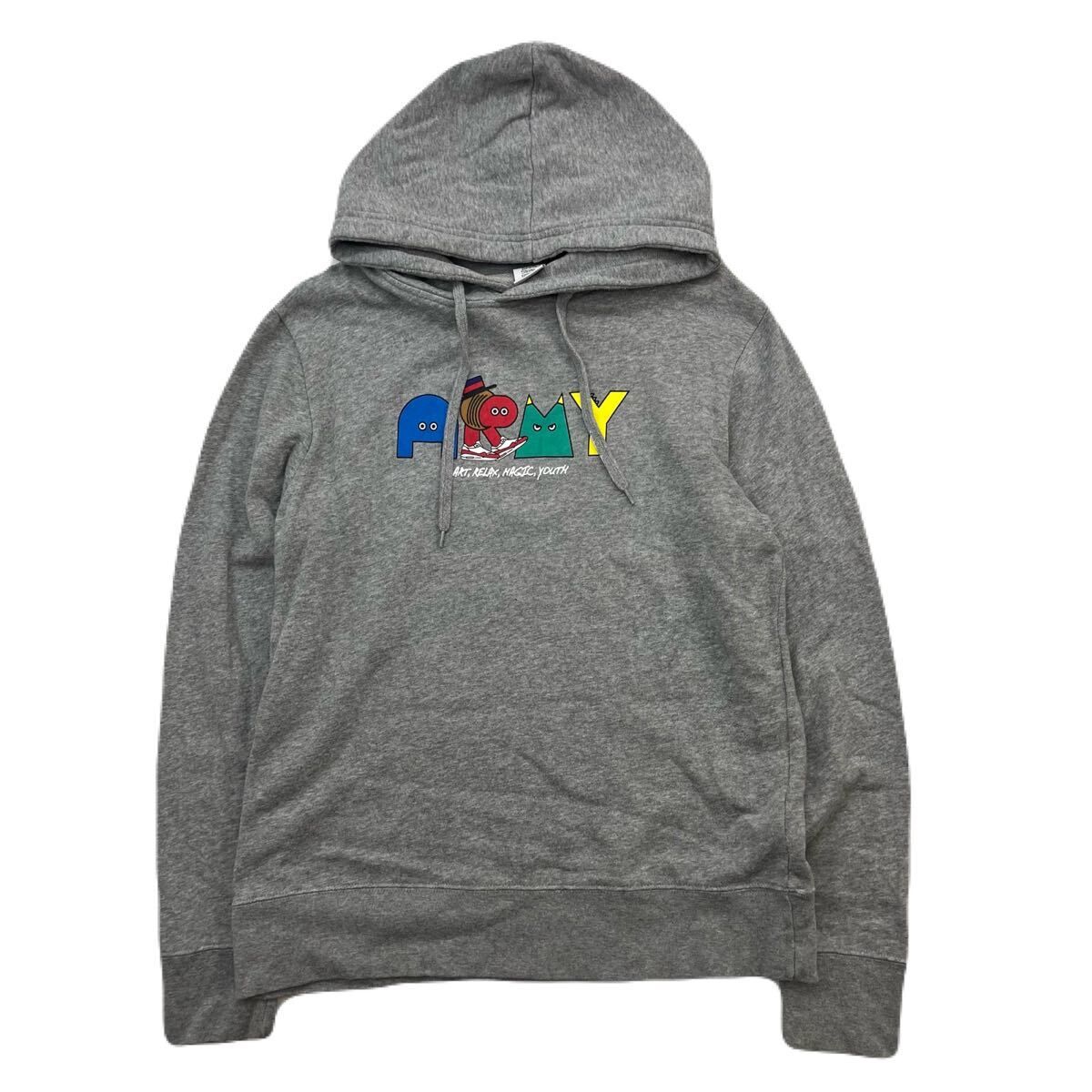 【中古】Design Tshirts Store graniph グラニフ ポップ ARMY プリント プルオーバー パーカー グレー ユニセックス L 大人カジュアル 古着■S4159
