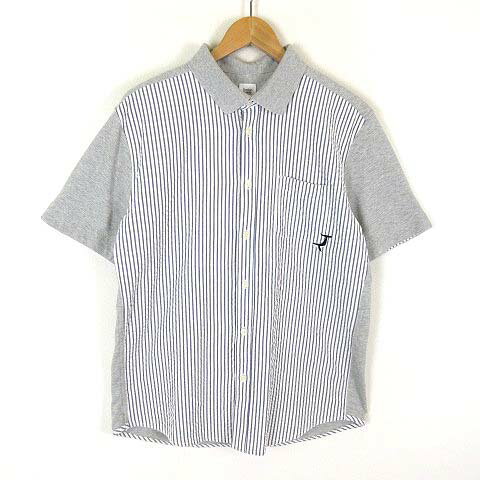 【中古】グラニフ graniph Design Tshirts Store graniph シャツ ストライプ柄 異素材 切替 鹿の子 シアサッカー クジラ 刺繍 コットン ストレッチ 半袖 L グレー 白 ホワイト 青 ブルー レディース 【ベクトル 古着】 250903