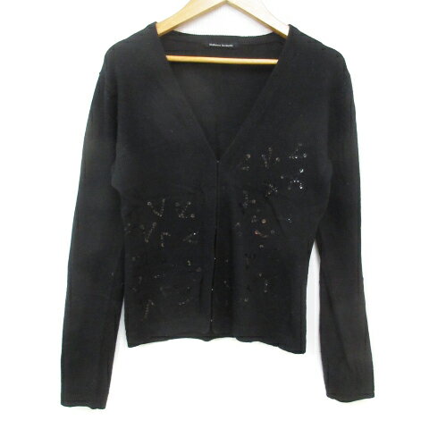 【中古】アバハウス ドゥヴィネット abahouse devinette ニットカーディガン ミドル丈 スパンコール ウール混 アンゴラ混 F 黒 ブラック /FF16 レディース 【ベクトル 古着】 240131