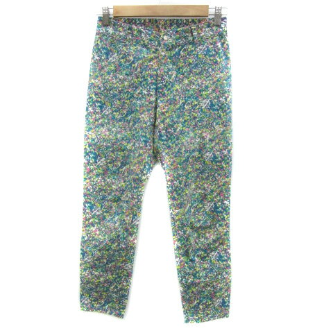 【中古】アバハウス ドゥヴィネット abahouse devinette スリムパンツ アンクル丈 花柄 2 マルチカラー 緑 グリーン /YS2 ■MO レディース 【ベクトル 古着】 240312