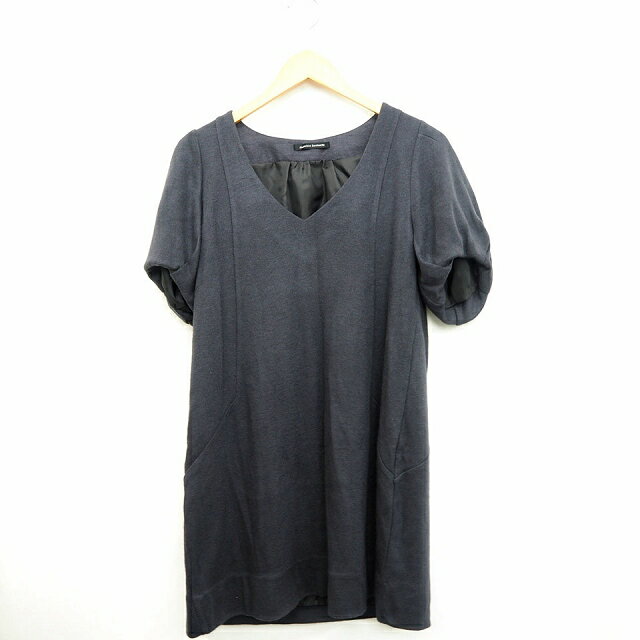 【中古】アバハウス ドゥヴィネット abahouse devinette ワンピース 無地 シンプル Vネック ひざ丈 五分袖 ウール混 ダークグレー /MT2 レディース 【ベクトル 古着】 210709