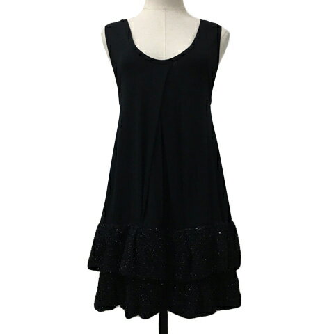 【中古】アバハウス ドゥヴィネット リュクス abahouse devinette Luxe ワンピース ドッキング フレア ティアード ミニ 切替 スパンコール ラメ ノースリーブ 黒 ブラック レディース 【ベクトル 古着】 250410