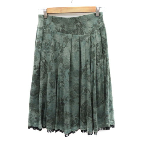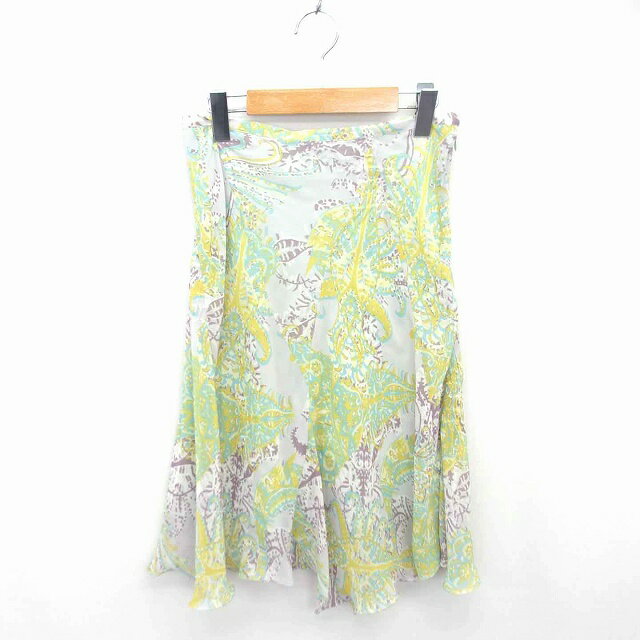 【中古】アバハウス ドゥヴィネット abahouse devinette フレア スカート ロング 総柄 薄手 サイドジップ 2 ライトグリーン 黄緑 /TT45 レディース 【ベクトル 古着】 230511