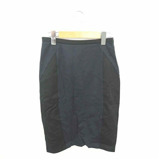 【中古】アバハウス ドゥヴィネット abahouse devinette スカート タイト ひざ丈 薄手 無地 シンプル バックジップ ネイビー ブラック 紺 黒 /TT43 レディース 【ベクトル 古着】 210722