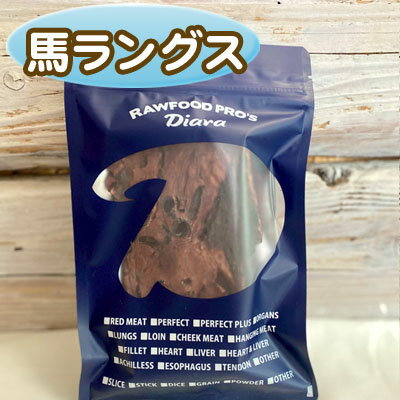 説明 新鮮な馬の肺を栄養を壊さず風味を損なわないよう、じっくり低温乾燥しました。 低カロリーでお腹にたまらないのでしつけやご褒美に最適です。 内容量 30g 原料原産国 日本またはカナダまたはアルゼンチン 製品加工国 日本 賞味期限 パッケージに記載 ご注意 完全無添加のため開封後は冷蔵庫などに入れ、お早めにご使用ください。馬肉を知り尽くした馬肉専門メーカーの自信作!鮮度も品質も最高級!Diara(ディアラ)「ドライ馬ラングス(肺)角切りおやつ」 素材にとことんこだわりました。ヒト用の食材として用いられる厳選された良質の素材そのままを使い、無駄な保存料・着色料・香料など添加物は一切使用していません。 食物アレルギーの原因は、食材そのものにあるのではなく、素材に含まれる化学合成添加物にあると言われています。 馬肉専門メーカー「ディアラ」の馬肉製品は化学物質を一切含まないので、アレルギーが心配なパートナーにも安心してお与えいただけます。 【身体にやさしい食材】 低脂肪・低カロリーの馬肉ですが、気になる脂肪分は不飽和脂肪酸が豊富なので血液循環を促し美しい毛艶を形成するとされています。余計な脂質を摂取したくない犬たちにとてもやさしい食材です。 【安心安全な食材】 成長促進剤などを投与し過密状態で飼育されている食用動物が多い中、馬は広い牧草地でのびのびと抗生剤やホルモン剤などの投与もなく飼育されています。そのため、人間が生で食すことができるレベルの安心安全な食材なのです。 【信頼の食材】 日本国内をはじめ多くの海外の動物園で飼育されている肉食獣は、その野生環境の食餌に近付けるために生肉を与えられています。また、上記の理由からその「生食」に「馬肉」が使用されていることが多く、「馬肉」を「信頼の食材」たらしめています。
