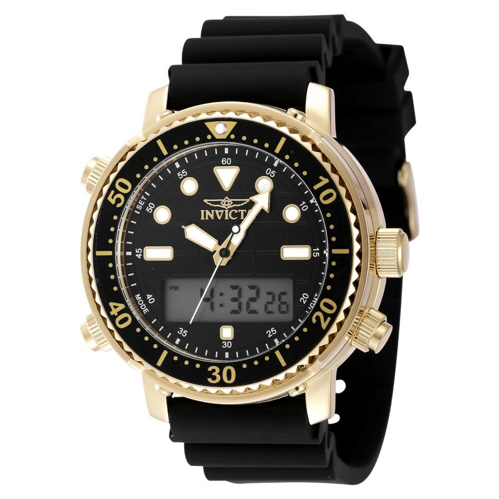 Invictaインビクタ Pro Diver DigiQuartz メンズ 腕時計 デジタル ゴールドケース ブラック シリコンベルト 50m防水 クロノグラフ