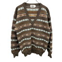 【まもなく終了|全品ポイント20倍|本日11/1(土)23:59まで\毎月1日はワンダフルデー/専用クーポン配布中】【中古】マッシモディーニ MASSIMO DINI セーター ウールカットソー Vネック フェアアイル柄 長袖 ニューウール100% M ブラウン 茶×緑×白 メンズ
