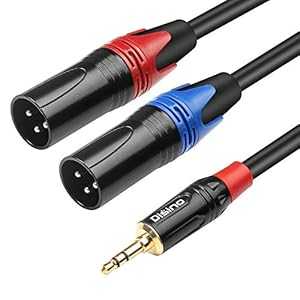 Disino 1/8 Inch to Dual XLR Male Y-Splitter Cable,Unbalanced 3.5mm Mini Jack TRS Stereo Aux to Double Male XLR Adapter Interconnect Breakout Patch Cord - 10 Feet/3 Meters