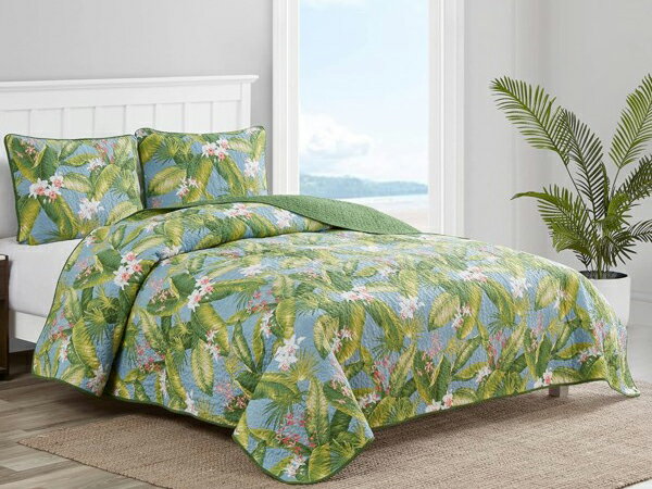 【スタンダード】 Tommy Bahama トミーバハマ Aregada Dock キルト2点セット (グリーン/スカイブルー) 223×172cm 薄手掛け布団1枚&枕カバー1枚 寝具