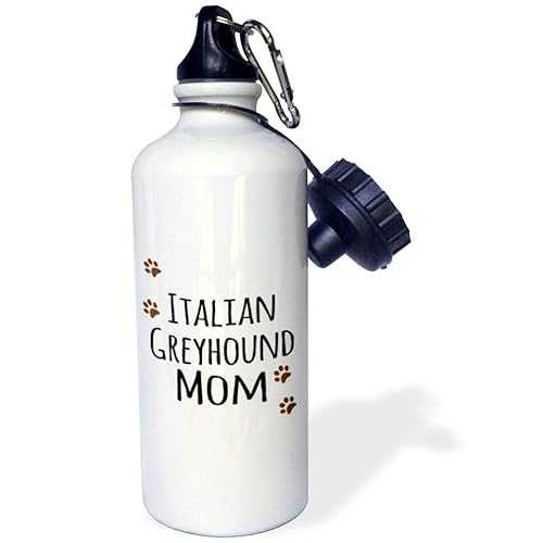 3dRose "Italian Greyhound Dog Mom-Doggie by breed-brown paw prints love doggy lover proud pet owner mama" Sports Water Bottle, 21 oz, White