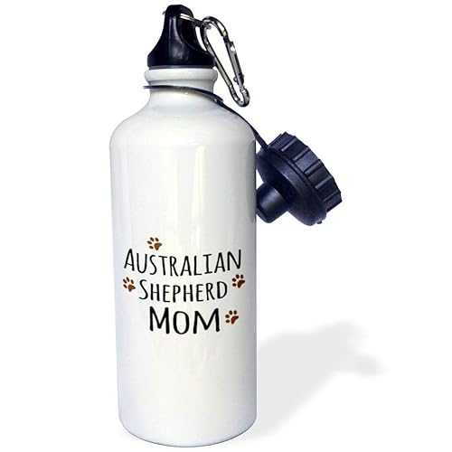 3dRose "Australian Shepherd Dog Mom-Doggie by breed muddy brown paw prints doggy lover love pet owner mama" Sports Water Bottle, 21 oz, White
