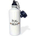 3dRose Pug Dog Mom-Doggie By Breed-Muddy Brown Paw Prints-Doggy Lover-Proud Pet Owner Mama Love Sports Water Bottle, 21 oz, White