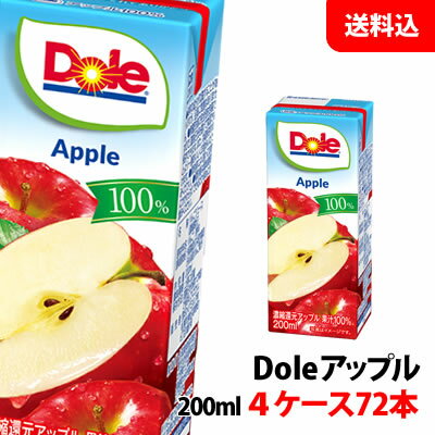 送料無料 Dole(ドール) 果汁100%ジュース アップル 200ml 4ケース(72本) りんごの優しい甘味 雪印メグミルク りんごジュース 紙パック