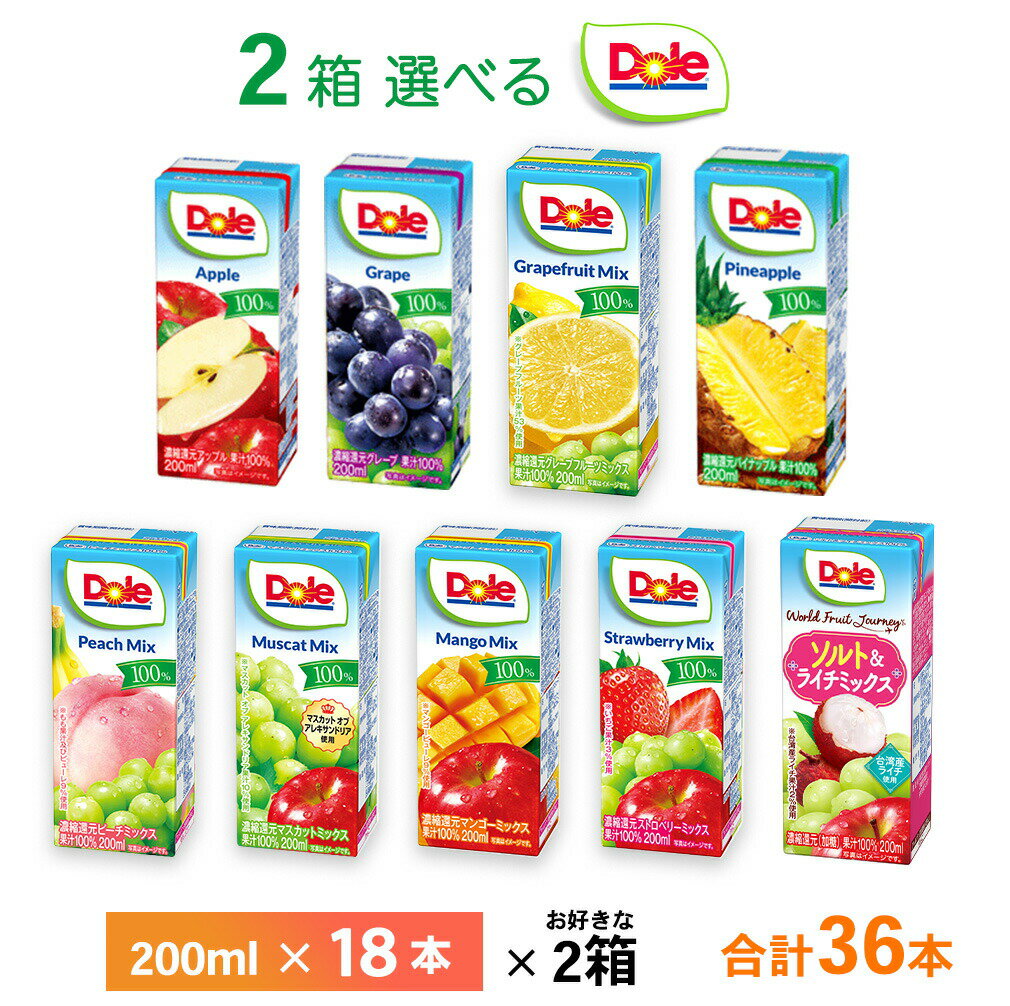 Dole ドール 100% 果汁ジュース 200ml 18本 セット【送料無料】【常温便】【グレープフルーツミックス】【グレープ】【パイナップル】【ピーチミックス】【マンゴーミックス】【マスカットミックス】【ストロベリーミックス】 フルーツジュース