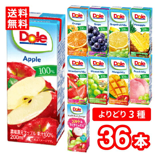 【送料無料】【3種選べる】雪印メグミルク Dole ドール LL200ml 36本(3種類×12本) ジュース 飲料 フルーツ100%ジュース まとめ買い 常備品 定番 おやつ 差し入れ お見舞い お中元 お歳暮 ギフト 飲み切りサイズ ストック 組み合わせ可能
