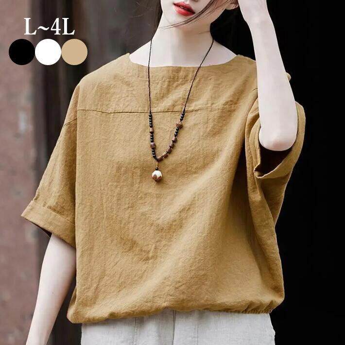 ブラウス レディース 半袖 リネン ドルマン ドルマンブラウス シャツ トップス 半袖 大きサイズ ゆったり 綿麻素材 夏 L 2L 3L 4L