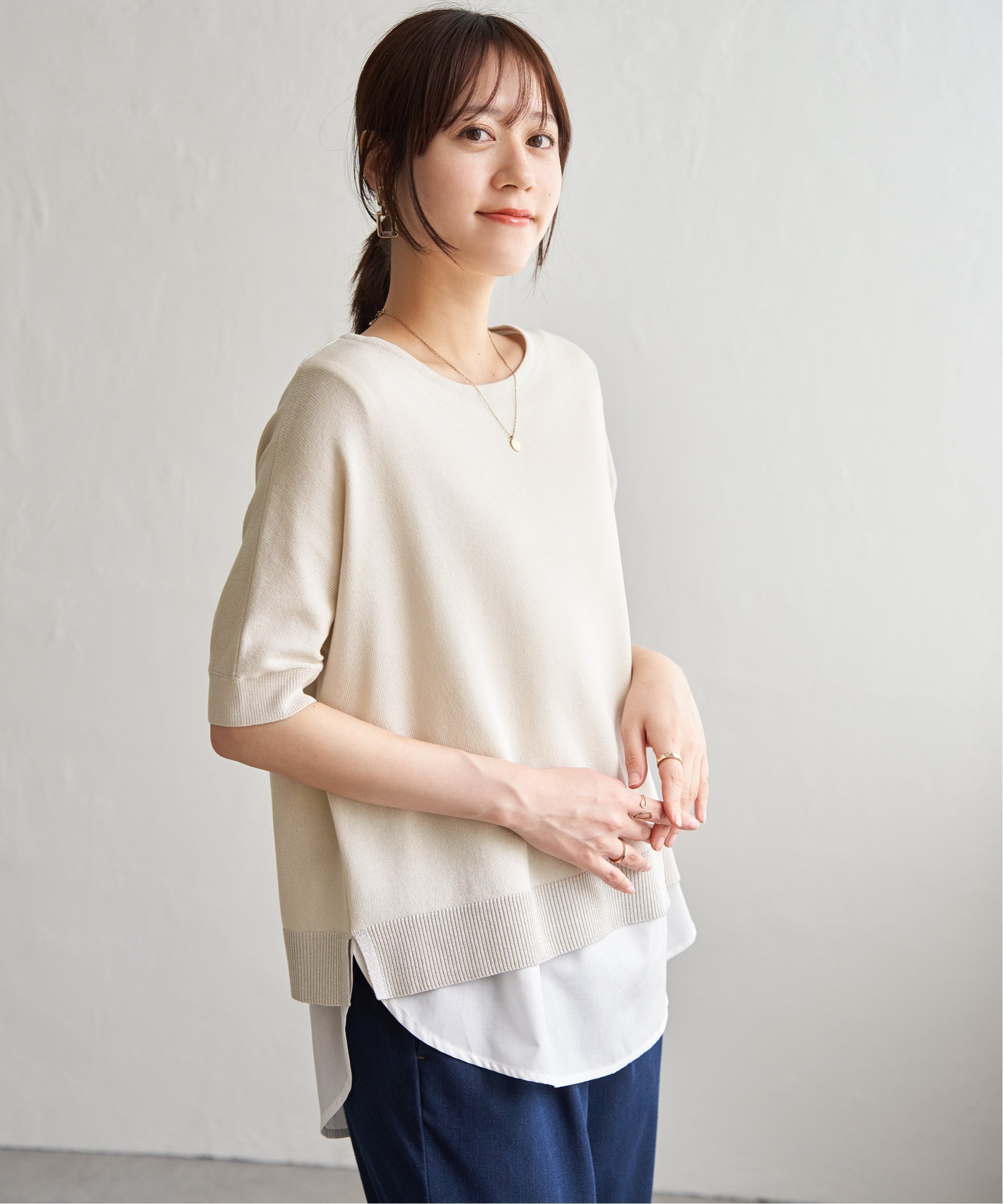 × × × ギフト対応 TOP コーディネート カラー 詳細 サイズ カートへ ↑上へ Tシャツ 5分袖 ドルマン レディース ボートネック 着痩せ すっきり 配色 コットン ポリエステル スラブ 伸縮性 薄手 軽い 涼しい 体型カバー 大きいサイズ ゆったり カジュアル 夏 パティ GENTIL ジャンティ 【メール便50】 r240130020 [商品説明] ・ついつい目で追ってしまうような、配色切り替えワイドTシャツ。 ・カジュアルすぎず、上品な生地に仕上げているのが透け感のあるコットンスラブ。 ・ポツポツと糸の節があり、素朴な風合いながらも無地でもしっかりと存在感ある表情に。 ・スルスルとした肌当たりがとっても滑らかで、風通しも良くこれからの季節にもぴったり◎ ・軽やかで、伸縮性があり、真夏でも手を伸ばしたい着心地。 ・そして、濃淡の違う二種類のカラーで切り替えた配色は、デザイン性だけではない秘密も。 ・肩から裾にかけて切り替え、見頃(内側)は薄い色、袖から裾(外側)は濃い色にすることで、着た時に自然と陰影を付け、「影」のような役割をしてくれます。 ・また、濃い色が全体をグッと引き締めて、メリハリをプラス。 [素材]コットン65% ポリエステル35% Tシャツ 5分袖 ドルマン レディース ボートネック 着痩せ すっきり 配色 コットン ポリエステル スラブ 伸縮性 薄手 軽い 涼しい 体型カバー 大きいサイズ ゆったり カジュアル 夏 パティ おうち時間 在宅 Stay Homeカラーバリエーション-COLOR ※実物に近いお色は、こちらをご参照ください。(太陽光での撮影となります。モニタの明るさや環境により実物と色が異なる場合がございます。) F43/ブラック系 A01/ホワイト系 D17/グリーン系 E33/パープル系 C25/ブルー系 B06/イエロー系 商品詳細-DETAIL 01.フロント 02.バック