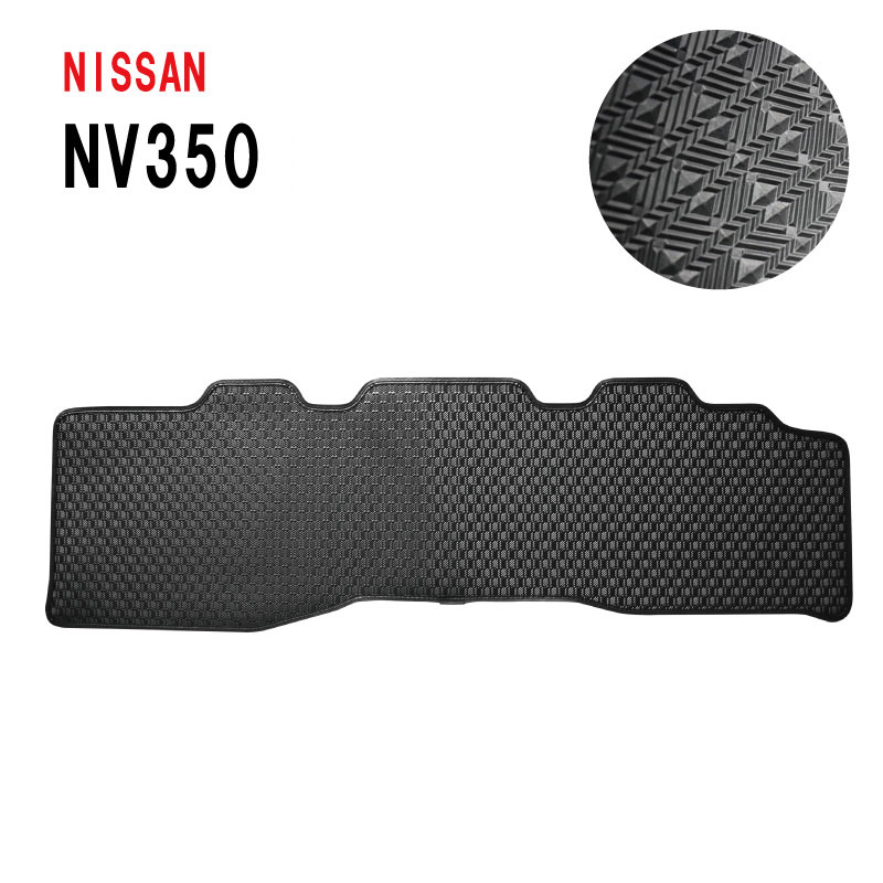日産 NV350 キャラバン CARAVAN E26 バン プレミアム GX DX リアマット フロアマット リア 後部座席 2列目 ラバーマット ゴムマット 防水 泥 水 雪 汚れ 傷 防止 カーマット ブラック 社外マット 低床 平床 4ドア 5ドア 6人 5人 社外品 日本製 専用 ゴム ラバー 2012年6月