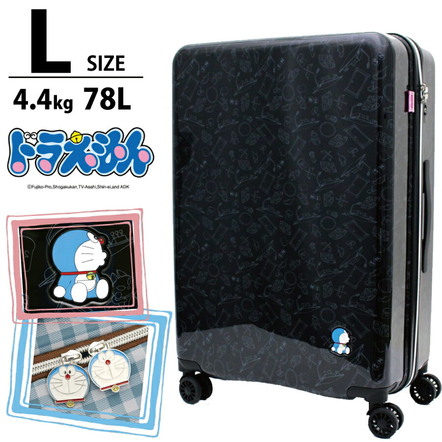 お得なP11倍実施中! ドラえもん スーツケース Lサイズ 78L 1週間以上 長期 海外 国内 旅行 家族 留学 ブランド デザイン どこでもドア ひみつ道具 ジッパータイプ ブラック キャリーバッグ キャリーケース シフレ siffler DOR2252-68 1年保証付