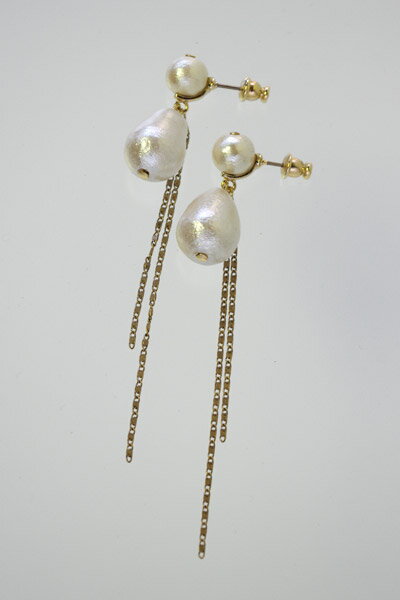 【ネコポス対応】drawsコットンパール・フリンジチェーンピアス ドレスアップ オケージョン パーティ