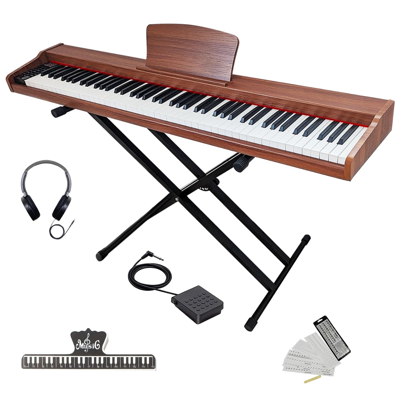 KIMFBAY電子ピアノ88鍵盤スタンドセットポータブルピアノMIDI対応DREAM音源初心者子供練習ピアノ木製ペダル付き日本語説明書オレンジ