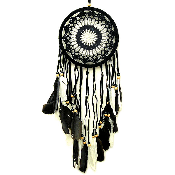 ドリームキャッチャー リリアン ニット編みタイプ ブラック[全長65cm・最大円直径17cm【アジアン雑貨 バリ 雑貨 開運アイテム】★ゆうパケット送料無料★