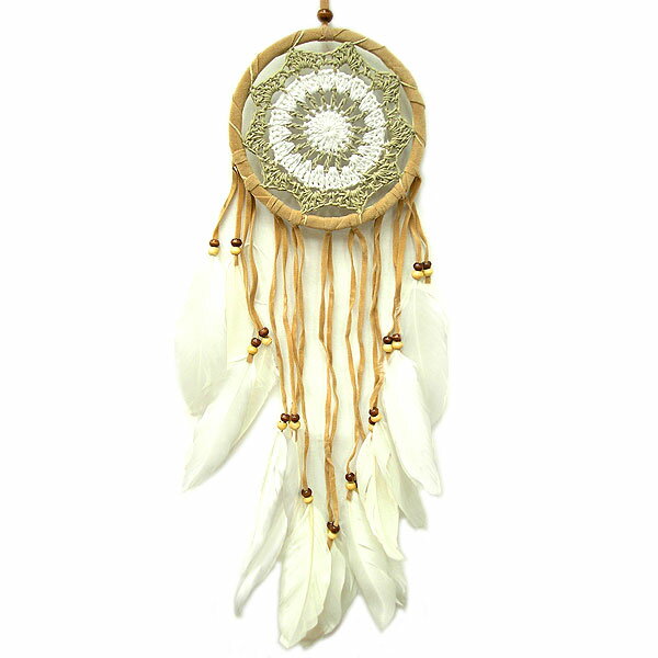 ドリームキャッチャー 白・茶 リリアン ニット編みタイプ [全長50cm/最大円直径12cm【アジアン雑貨 バリ 雑貨 開運アイテム】★ゆうパケット送料無料★