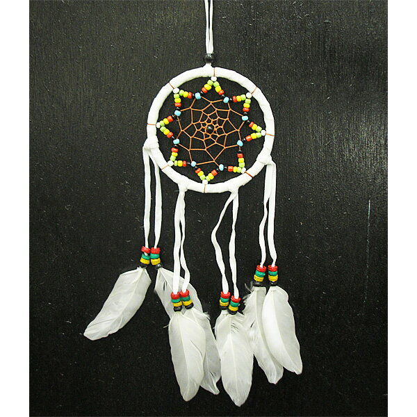 ドリームキャッチャー ミニ・ホワイト ラスタカラービース [全長約40cm・最大円直径約9cm【アジアン雑貨 バリ 雑貨 開運アイテム】【★ゆうパケット送料無料★】