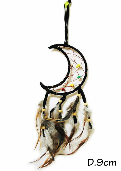 ドリームキャッチャー 黒・三日月 カラフル石ビース [全長約30cm・三日月直径約9cm]おしゃれな 壁掛け 吊下げ インテリア エスニック アジアン 雑貨【アジアン雑貨 バリ 雑貨 開運アイテム】★ゆうパケット送料無料★