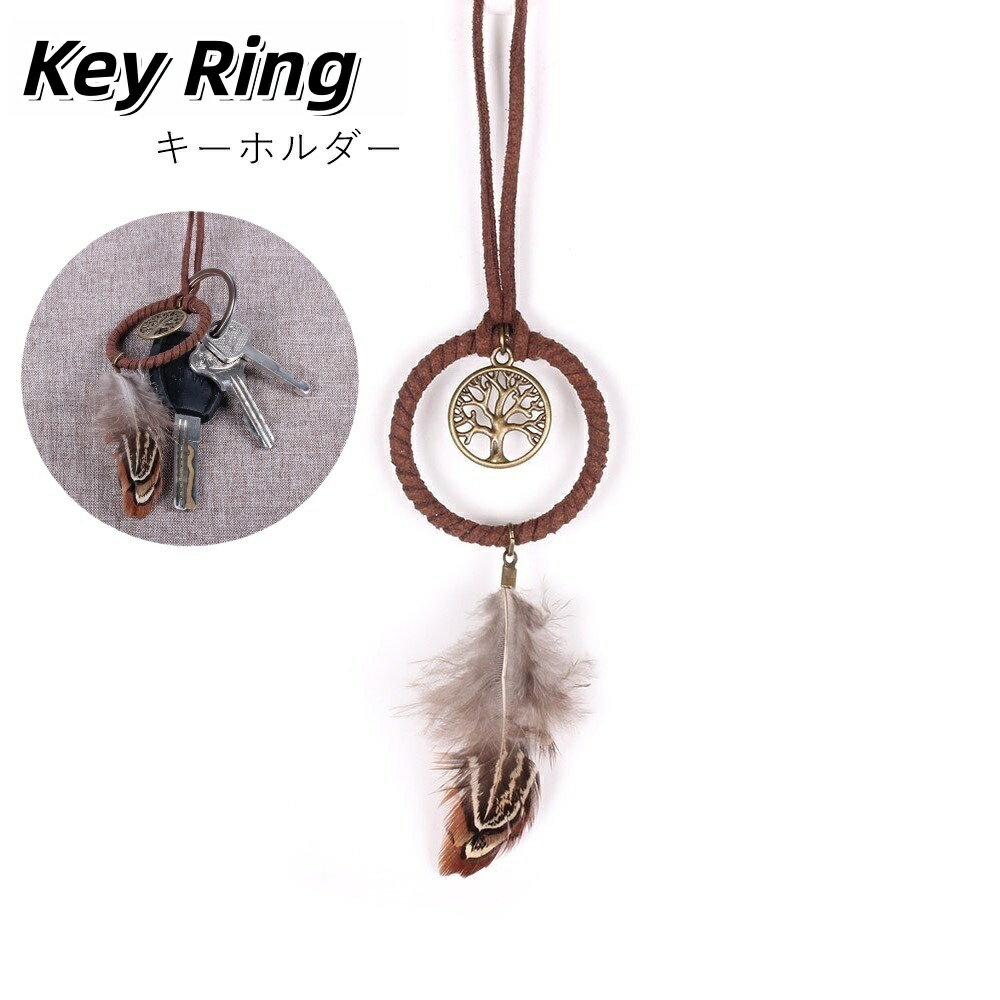 送料無料 キーホルダー キーリング レディース 女性 メンズ 男性 ユニセックス 男女兼用 ファッション雑貨 ドリームキャッチャー風 スエード調 フェイクフェザー ブラウン クール かっこいい かわいい キュート ネイティブアメリカン風 ボヘミアン風