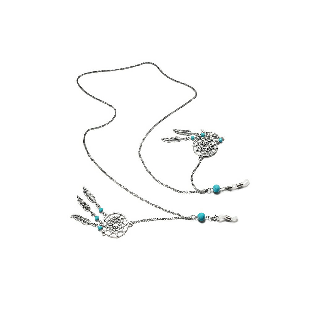 送料無料 メガネチェーン ドリームキャッチャー シルバー エスニック インテリア 眼鏡 ターコイズ